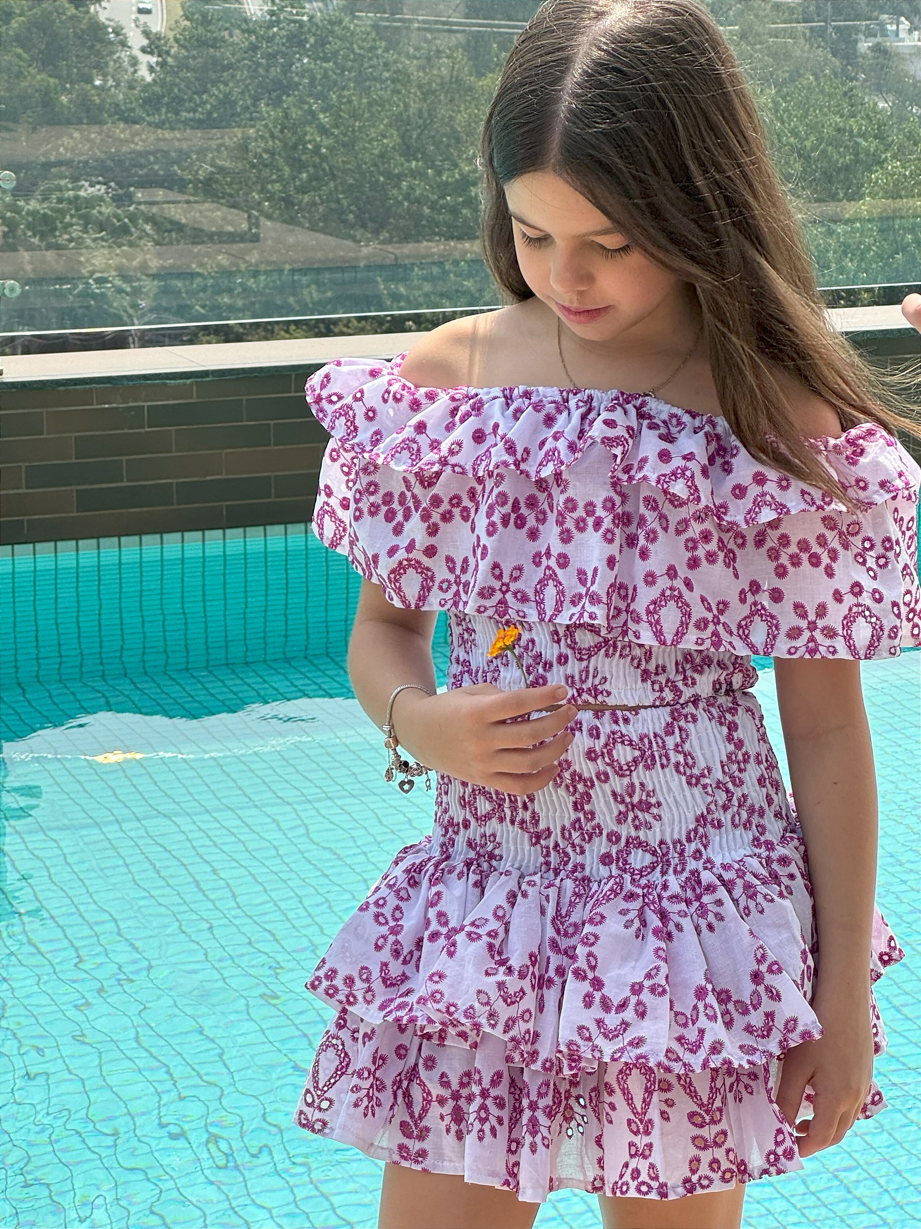Estilo e personalidade definem o Conjunto Estampado Rosa Fashion. Com sua saia e cropped com textura franzida e babados encantadores, ele oferece uma proposta moderna e estilosa, perfeita para quem deseja se destacar em eventos casuais e festas.